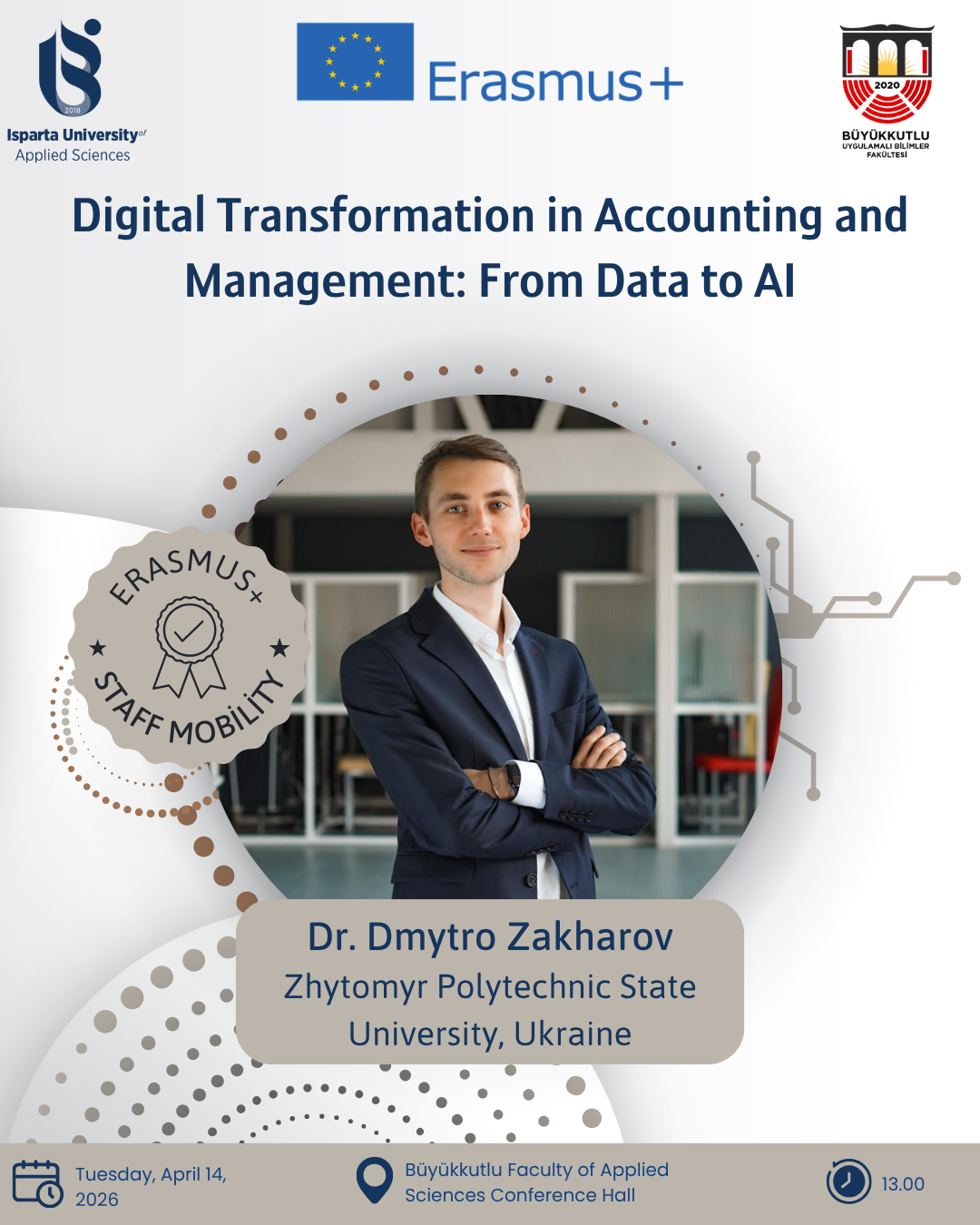 "Muhasebe ve Yönetimde Dijital Dönüşüm: Veriden Yapay Zekaya" başlıklı seminer, 14 Nisan 2026 tarihinde saat 13:00'te gerçekleştirilecektir. Katılımınızı bekliyoruz.